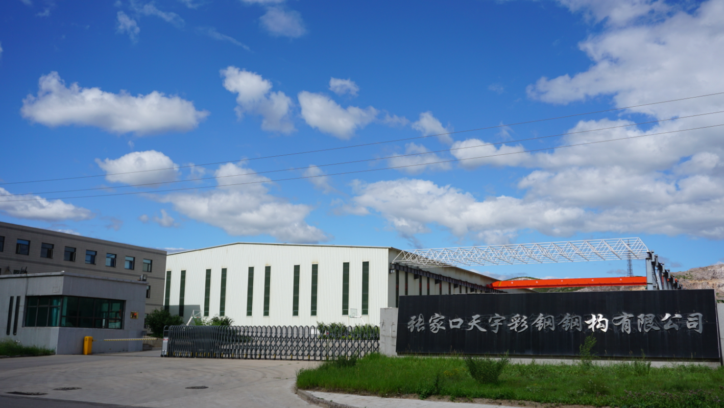 張家口天宇鋼結(jié)構(gòu)工程有限公司成立于1998年,注冊(cè)資金1600萬元;張家口天宇彩鋼鋼構(gòu)有限公司成立于2009年,注冊(cè)資金1680萬元,為張家口天宇鋼結(jié)構(gòu)工程有限公司的全資子公司。公司位于張家口市東山產(chǎn)業(yè)集聚區(qū),占地98畝,生產(chǎn)車間23000平方米,辦公用房2000平方米,是集鋼構(gòu)件制作、彩鋼制品、鋼結(jié)構(gòu)工程設(shè)計(jì)施工為一體的綜合性企業(yè)。產(chǎn)品有五大系列上百個(gè)品種,主要生產(chǎn)焊接H型鋼及非標(biāo)鋼構(gòu)件制作、彩鋼壓型板、彩鋼夾心復(fù)合板、巖棉復(fù)合板、冷庫專用板;承攬球型網(wǎng)架、門式鋼架、大型鋼結(jié)構(gòu)廠房、車間、多層鋼結(jié)構(gòu)的設(shè)計(jì)施工、技術(shù)咨詢服務(wù)等。是張家口市成立較早、規(guī)模大的彩鋼、鋼構(gòu)企業(yè)。