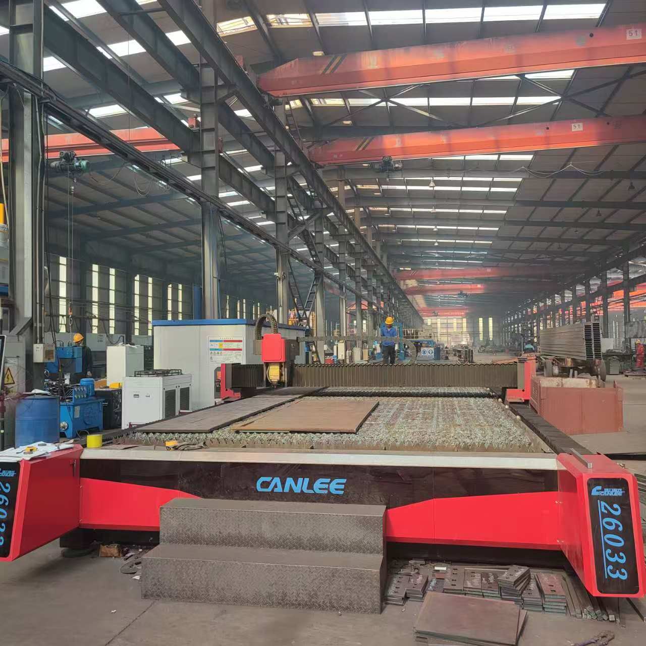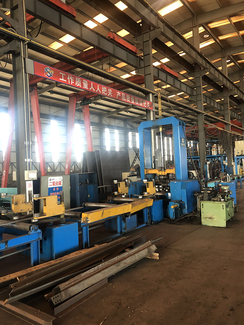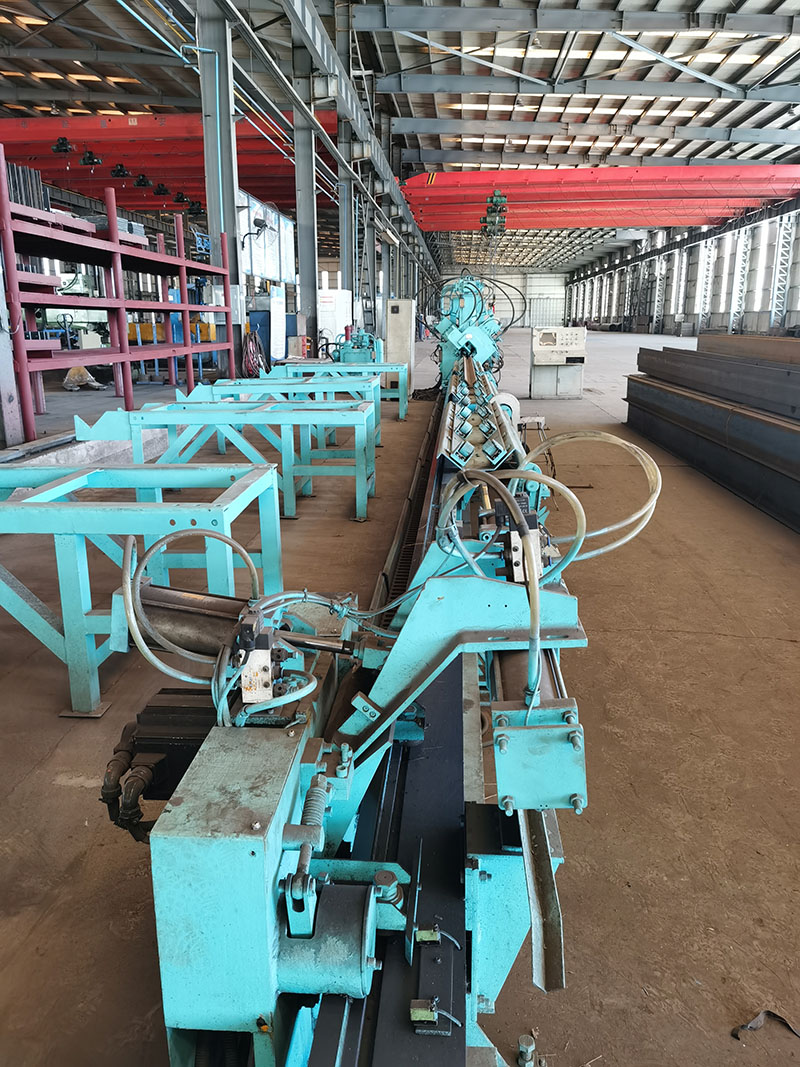 配有德國卡巴赫高速鋸床、三維鉆、鉆鋸一體生產線,德國KISTLER組、焊、矯一體機,大幅面激光切割機、數(shù)控火焰切割機、等離子切割機、組立機、龍門式埋弧焊機、矯正機、全自動6米折彎機、剪板機、搖臂鉆、數(shù)控相貫線切割機、型材切割機、電渣焊機、拋丸機等設備構成的鋼結構件生產線,并配有其它全自動數(shù)字化數(shù)控鉆床,以及焊機、起重設備等配套輔助設備,C型鋼成型設備數(shù)臺,鋼構件加工年生產能力3萬噸。