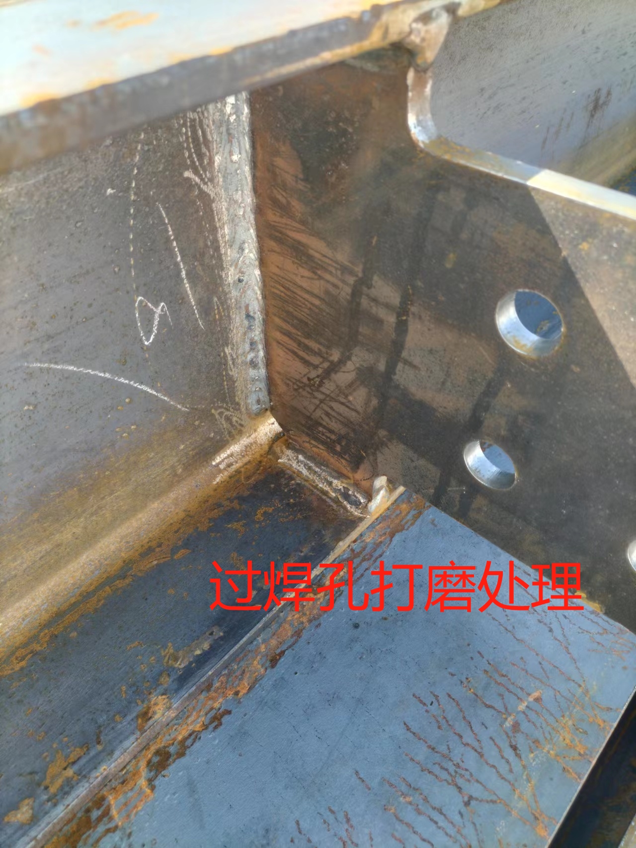 此加工構(gòu)件客戶提出了極為嚴格生產(chǎn)要求,鉚焊工藝標(biāo)準(zhǔn)很高,清渣打磨要做到干凈美觀,第三方探傷機構(gòu)要求每根構(gòu)件,每道焊縫進行檢測。